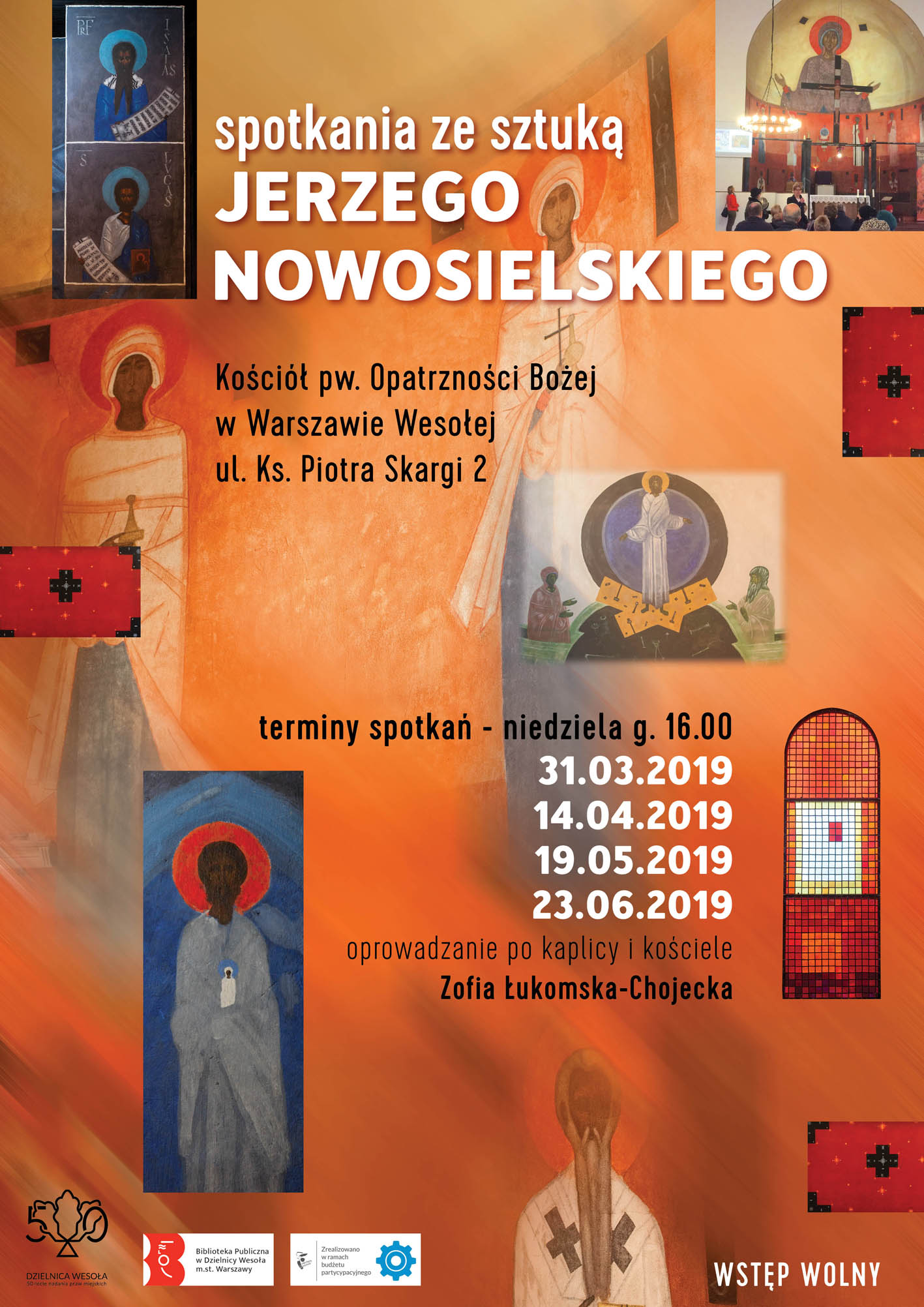 Zapraszamy na oprowadzanie po kaplicy domu rekolekcyjnego i Kościele p.w. Opatrzności Bożej w Warszawie Wesołej (ul. Ks. Piotra Skargi 2), w których znajdują się prace prof. Jerzego Nowosielskiego – jednego z najwybitniejszych współczesnych pisarzy ikon. Spotkania dają możliwość poznania kaplicy i świątyni – wyjątkowych miejsc, w których artysta zaprojektował całość wystroju i wyposażenia: polichromie, witraże, posadzkę, sufit, elementy w prezbiterium.