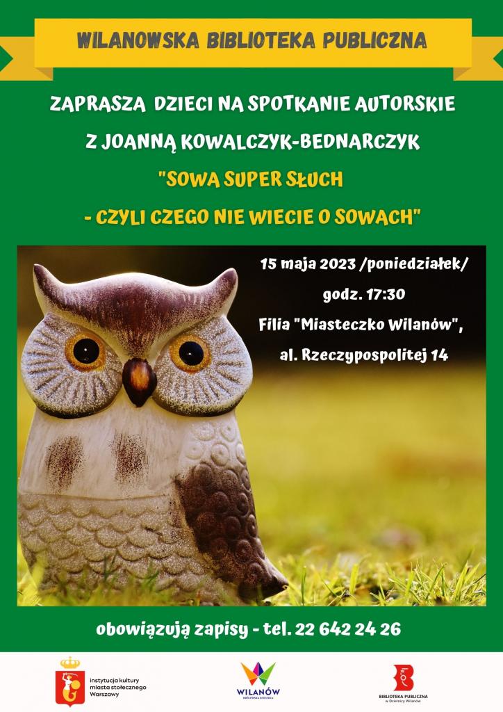 Co: Spotkanie autorskie z Joanną Kowalczyk-Bednarczyk „Sowa super słuch – czyli czego nie wiecie o sowach”