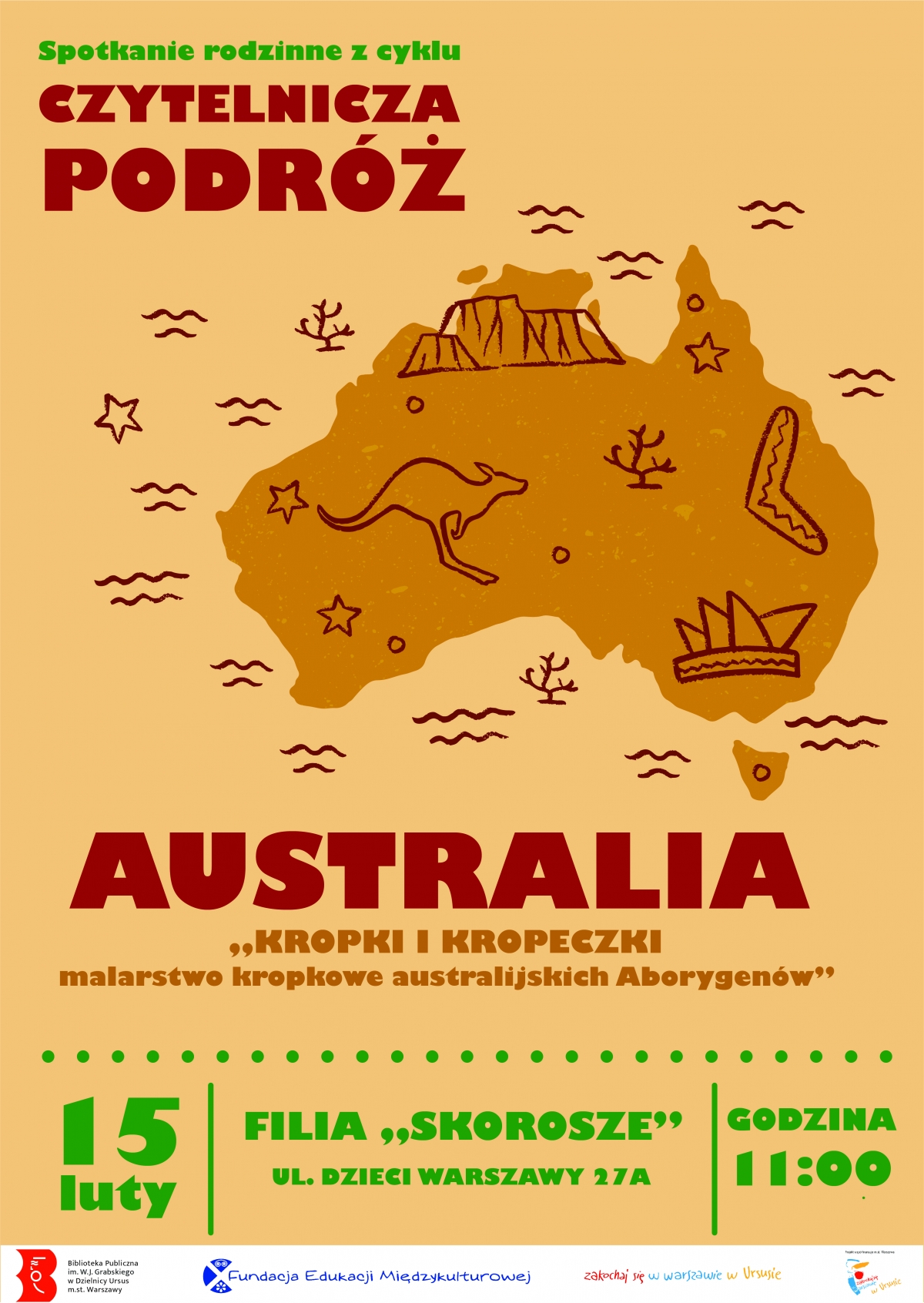 Jak wygląda tradycyjne malarstwo Aborygenów? Jakie znaczenia mogą skrywać kropki i kropeczki? Jak odczytywać historie zapisane kropkowanymi wzorami? Wybierzemy się w niezwykłą podróż do Australii. Poznamy kulturę i sztukę rdzennych mieszkańców tego odległego kraju.