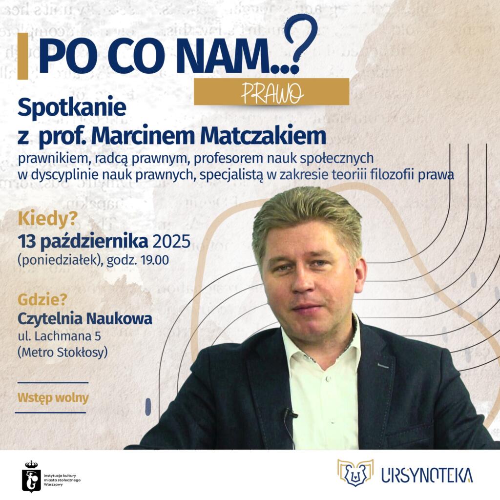 Gościem Czytelni Naukowej (ul. Lachmana 5) będzie prof. dr hab. Marcin Matczak który opowie o tym, po co nam tak naprawdę prawo. ⚖️