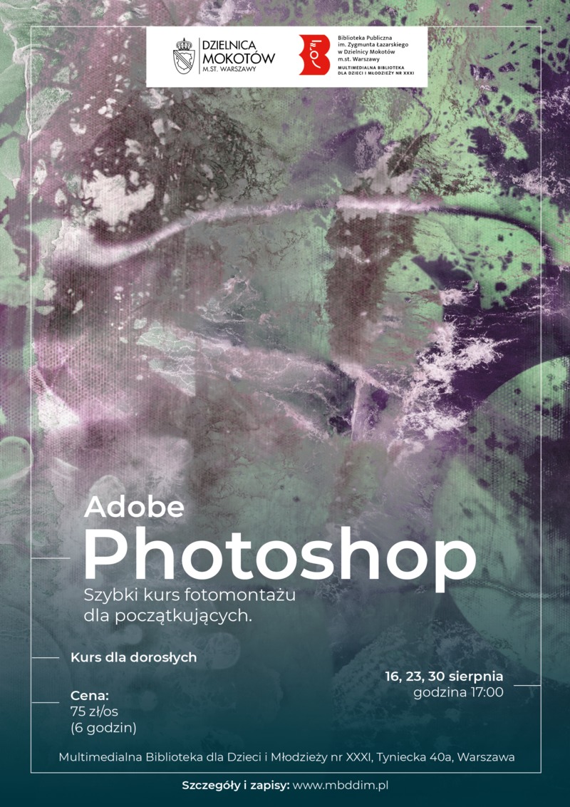 Multimedialna Biblioteka dla Dzieci i Młodzieży nr XXXI zaprasza na szybki kurs fotomontażu z programem Adobe Photoshop. Podczas 3-spotkaniowego kursu poznacie podstawy obsługi programu, narzędzia do korekty świetlnej i barwnej, sposoby na zaznaczanie i wycinanie elementów, maski oraz narzędzia do retuszu. Wszystko to razem pozwoli stworzyć kompletny fotomontaż z dowolnie wybranych zdjęć. Poznacie również darmowe alternatywy dla programu Photoshop.