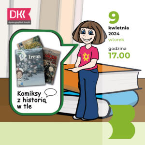 Dzieci w wieku 9-13 lat zapraszamy na spotkanie DKK dla dzieci o komiksach z historią w tle – Biblioteka dla Dzieci i Młodzieży nr 22, wtorek 9 kwietnia 2024 od godz. 17.00.