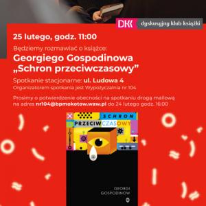DKK na Ludowej 4 zaprasza 25 lutego na godz. 11:00 na rozmowę o książce Georgiego Gospodinowa „Schron przeciwczasowy”.