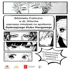 Wilanowska Biblioteka Publiczna przy ul. Kolegiackiej 3 w każdą trzecią środę miesiąca zaprasza młodzież na „Dyskusyjny Klub Mangowy”.