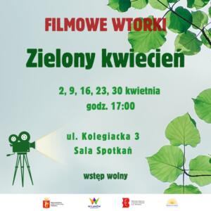 W kwietniu Biblioteka Główna przy ul. Kolegiackiej 3 zaprasza na godz. 17:00 na pokazy filmowe w ramach „Zielonego kwietnia”.