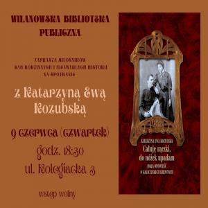 9 czerwca o godz. 18:30 zapraszamy na ul. Kolegiacką 3 na spotkanie autorskie z Katarzyną Ewą Kozubską, poświęcone jej wspomnieniowej książce.