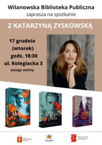 17 grudnia o godz. 18:30 w Bibliotece Głównej z Katarzyną Zyskowską będziemy rozmawiać o silnych kobiecych bohaterkach.