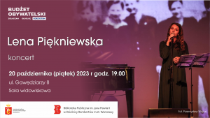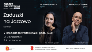 2 listopada o godzinie 19:00 w sali widowiskowej Biblioteki przy ul. Gawędziarzy 8 zaśpiewa Dorota Miśkiewicz przy akompaniamencie Marka Napiórkowskiego.