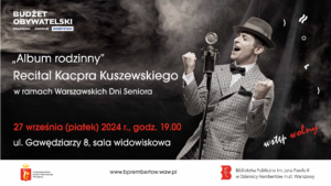 Zapraszamy na wyjątkowy wieczór z Kacprem Kuszewskim i jego recitalem „Album rodzinny”. Koncert odbędzie się w piątek, 27 września o godzinie 19.00 w Bibliotece przy ulicy Gawędziarzy 8.
