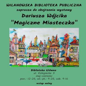 9 maja o godz. 18:30 Wilanowska Biblioteka Publiczna zaprasza na ul. Kolegiacką 3 na wernisaż wystawy Dariusza Wójcika „Magiczne miasteczka”.