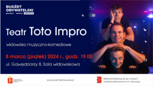 Zbliża się niezapomniany wieczór z grupą improwizacyjną ToTo Impro, który odbędzie się 8 marca (piątek) o godzinie 19:00 w sali widowiskowej Biblioteki przy ul. Gawędziarzy 8.