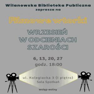 We wrześniowe wtorki o godz. 18:00 zapraszamy do Biblioteki Głównej na ul. Kolegiacką 3 na seanse filmowe w ramach „Września w odcieniach szarości”.
