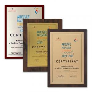Z przyjemnością pragniemy poinformować, że Biblioteka Publiczna w Dzielnicy Targówek m.st. Warszawy otrzymała certyfikat „Miejsce Przyjazne Seniorom na lata 2019-2021” przyznany przez Miasto Stołeczne Warszawy i Warszawską Radę Seniorów.