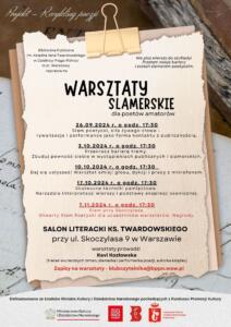 Biblioteka Publiczna im. ks. Jana Twardowskiego w Dzielnicy Praga-Północ zaprasza na jesienny cykl warsztatów slamerskich dla poetów amatorów.
