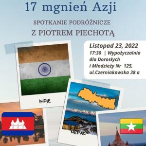 Spotkanie z podróżnikiem po Azji w Wypożyczalni dla Dorosłych i Młodzieży nr 125 (ul. Czerniakowska 38a) 23 listopada 2022.