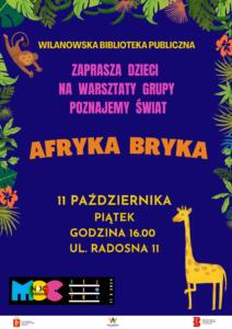 11 października o godz. 16:00 w filii Biblioteki przy ul. Radosnej 11 podczas warsztatów „Afryka bryka” poznamy lepiej Czarny Ląd.