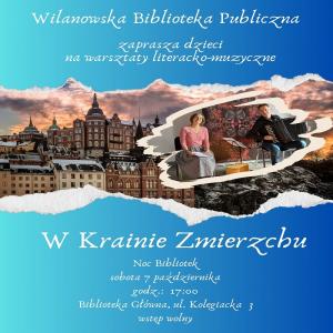 Miłośników Astrid Lindgren zapraszamy w Noc Bibliotek o godz. 17:00 na warsztaty literacko-muzyczne „W Krainie Zmierzchu”.