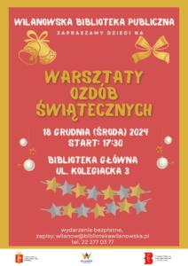 W czwartek 19 grudnia o godz. 17:30 zapraszamy do filii przy al. Rzeczypospolitej 14 do wspólnego tworzenia ozdób świątecznych.