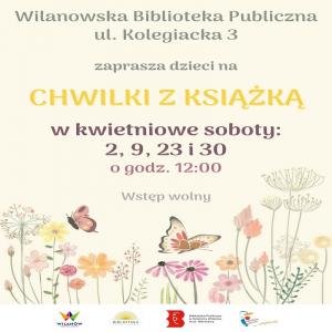 W sobotnie południa Wilanowska Biblioteka Publiczna zaprasza przedszkolaki na ul. Kolegiacką 3 na krótkie spotkania „Chwilki z książką”.