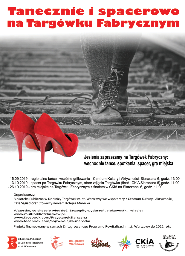 Biblioteka Publiczna w Dzielnicy Targówek m.st. Warszawy we współpracy z Centrum Kultury i Aktywności, Radą Osiedla Targówek Fabryczny oraz Stowarzyszeniem Obrony Pozostałości Warszawy „Kolejka Marecka” realizuje projekt pt. „Tanecznie i spacerowo na Targówku Fabrycznym”. Środki finansowe na jego wykonanie pozyskane zostały z Funduszu Animacji Kultury 2019.