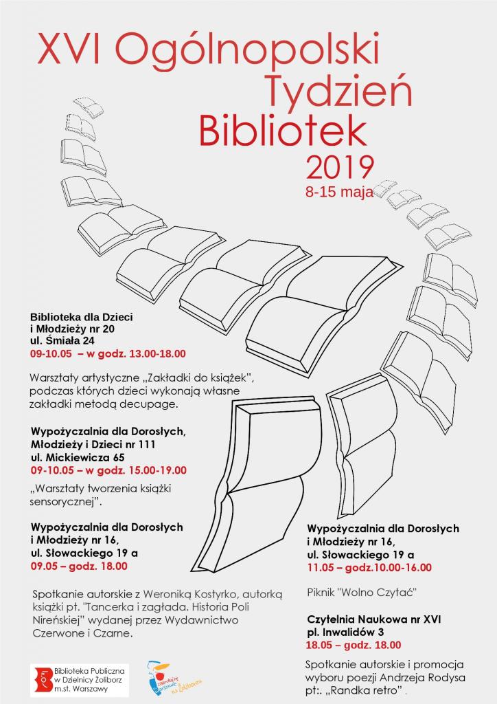 Z tej okazji Biblioteka Publiczna w Dzielnicy Żoliborz m.st. Warszawy zaprasza swoich czytelników oraz osoby chętne na szereg imprez służących upowszechnianiu kultury czytelniczej i promocji placówek bibliotecznych.