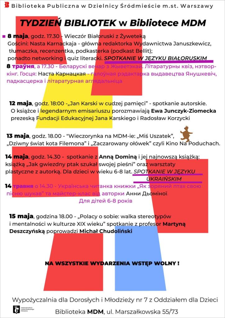 Biblioteka MDM (ul. Marszałkowska 55/73) zaprasza na TYDZIEŃ BIBLIOTEK.