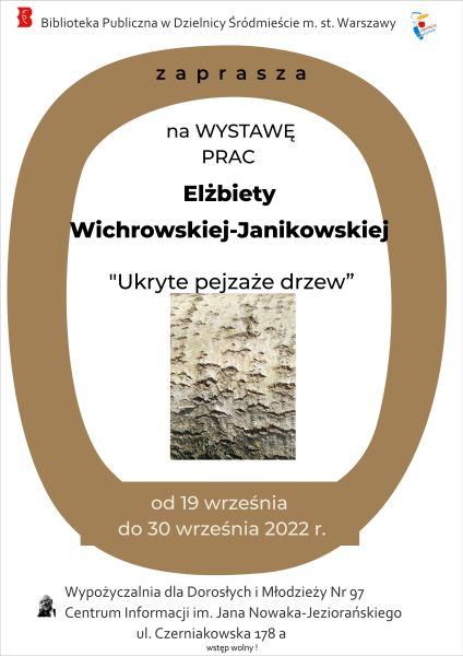 W dniach 19.09.-30.09.2022 r. w Centrum Informacji im. Jana Nowaka-Jeziorańskiego przy ul. Czerniakowskiej 178a prezentowana będzie wystawa prac Elżbiety Wichrowskiej-Janikowskiej, pt.: „Ukryte pejzaże drzew”.