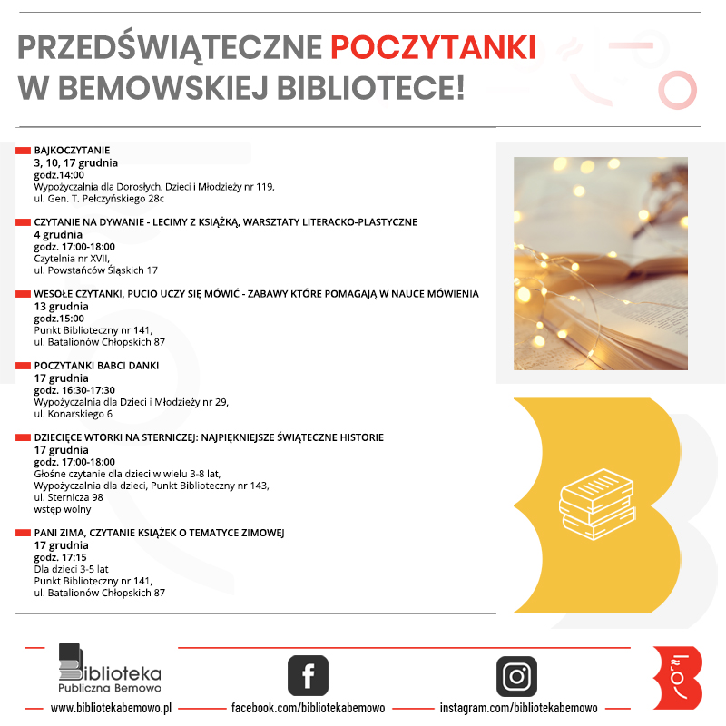 W grudniu czekamy na naszych najmłodszych czytelników z pięknymi opowieściami. Również świątecznymi! Niezwykłe historie, niezapomniane baśnie i przypowieści ocieplą ten zimny miesiąc i pobudzą wyobraźnię.