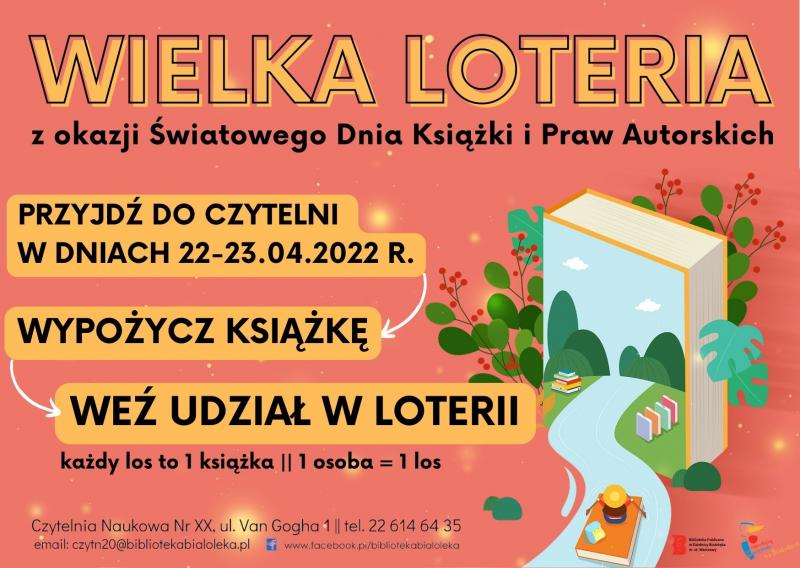 Zapraszamy serdecznie w dniach 22-23 kwietnia 2022 r. do Czytelni Naukowej! Wypożycz książkę (albo książki) i weź udział w loterii! Każdy los jest wygrany – czekają na Was naprawdę fantastyczne książki!