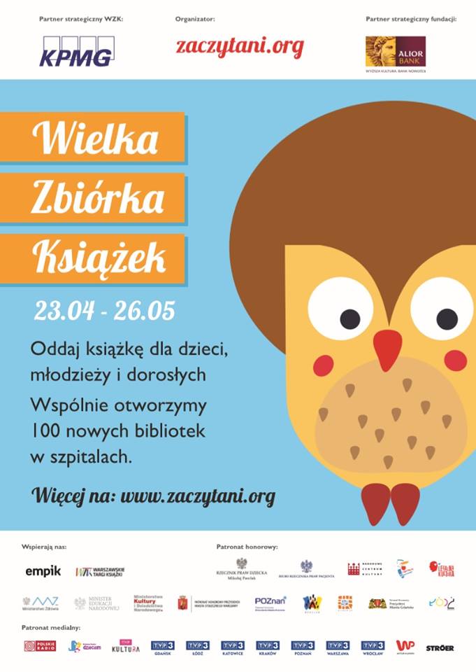 W tym czasie możecie dostarczać nam książki w dobrym stanie (wydane po 2000 roku) dla dzieci i młodzieży oraz „czytadła” dla dorosłych. Zachęcamy do wzięcia udziału w zbiórce.