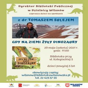 29 maja o godz. 11:00 Biblioteka przy ul. Kolegiackiej 3 zaprasza na spotkanie z dr hab. Tomaszem Sulejem „Gdy na świecie żyły dinozaury”. Obowiązują zapisy