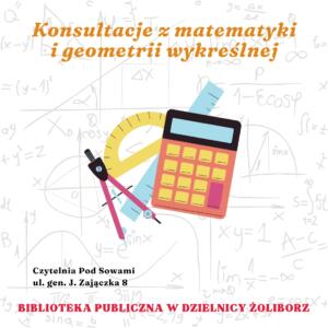 Bezpłatne konsultacje z matematyki i geometrii wykreślnej. Poniedziałki w Czytelni Pod Sowami, ul. gen. J. Zajączka 8, g. 16:00-18:00.