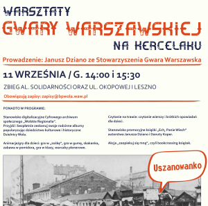 11 września u zbiegu al. Solidarności oraz ul. Okopowej i Leszno powstanie mini Kercelak, gdzie będzie można poczuć klimat przedwojennej Warszawy i skorzystać z licznych atrakcji jakie przygotowała na tę okazję wolska Biblioteka. W programie m.in. warsztaty gwary warszawskiej, które poprowadzi Janusz Dziano ze Stowarzyszenia Gwara Warszawska.