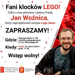Zapraszamy na wyjątkowe spotkanie z Janem Woźnicą – pierwszym i jedynym Polakiem, który zaprojektował własny zestaw Lego Ideas!