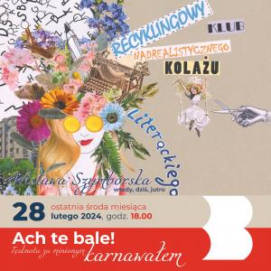 W środę 28 lutego 2024 o godz. 18.00 Czytelnia i Wypożyczalnia Naukowa nr VI zaprasza na spotkanie Recyklingowego Klubu Nadrealistycznego Kolażu Literackiego na cześć Wisławy Szymborskiej. W lutym wspominamy z tęsknotą miniony karnawał. Wstęp wolny.