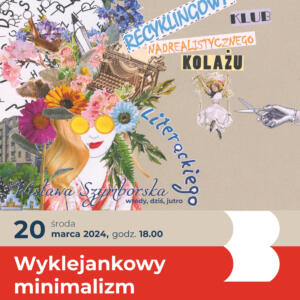 W środę 31 stycznia 2024 o godz. 18.00 Czytelnia i Wypożyczalnia Naukowa nr VI zaprasza na spotkanie Recyklingowego Klubu Nadrealistycznego Kolażu Literackiego na cześć Wisławy Szymborskiej. Nasze styczniowe spotkanie będzie okazją do wykonania autoportretu. Wstęp wolny.