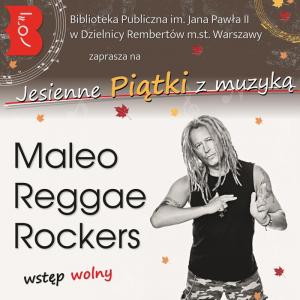 Koncert grupy MALEO REGGAE ROCKERS, zamykający tegoroczną edycję współorganizowanego przez Samorząd Województwa Mazowieckiego cyklu „Jesienne piątki z muzyką”, odbędzie się w gmachu Biblioteki przy ul. Gawędziarzy 8 w piątek 22 listopada o godzinie 19:00.
