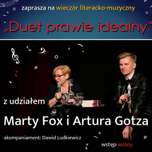 Biblioteka w Rembertowie serdecznie zaprasza na wieczór literacko-muzyczny zatytułowany „Duet prawie idealny”. Spotkanie z udziałem Marty Fox, autorki powieści pt. „Idol” oraz bohatera tej powieści Artura Gotza, aktora i wokalisty z akompaniamentem Dawida Ludkiewicza odbędzie się 19 marca 2020, o godzinie 18:00.