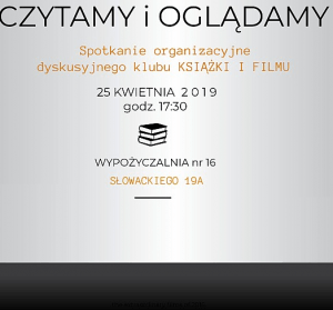 Zapraszamy na pierwsze spotkanie Dyskusyjnego Klubu Książki i Filmu.
