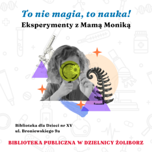 Warsztaty dla dzieci „To nie magia – to nauka! Eksperymenty z Mamą Moniką”. Biblioteka przy Broniewskiego 9a, 24.02, g. 17:30. ZAPISY!
