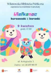 9 kwietnia o godz. 17:30 zapraszamy na rodzinne warsztaty „Wielkanoc, kurczaczki i baranki”, podczas których wykonamy świąteczne dekoracje.