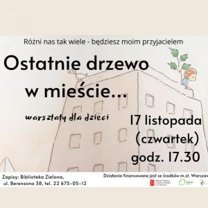 Zapraszamy na warsztaty dla dzieci w Bibliotece Zielonej na Białołęce!