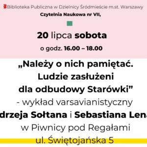 Zapraszamy na wykład varsavianistyczny do Piwnicy pod Regałami.