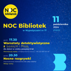 Biblioteka Publiczna w Dzielnicy Ursus zaprasza na kolejną edycję Nocy Bibliotek.