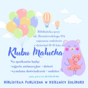 Zapraszamy rodziców z dziećmi w wieku 0-3 lata na zajęcia animacyjne. Podczas spotkań będzie można spędzić miło czas a także wymienić się doświadczeniami dotyczącymi rozwoju dzieci.