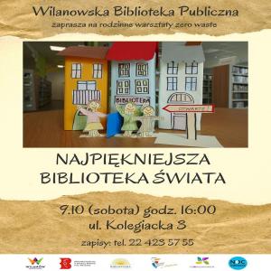 9 października o godz. 16:00 Wilanowska Biblioteka Publiczna zaprasza na ul. Kolegiacką 3 na warsztaty zero waste „Najpiękniejsza biblioteka świata”.