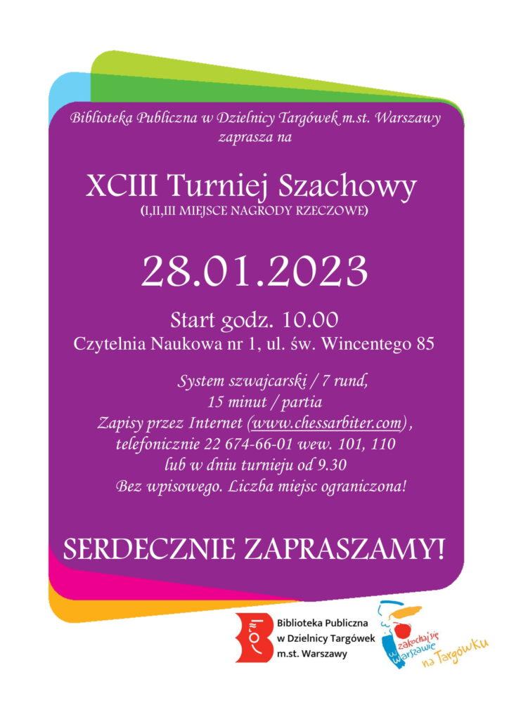 Biblioteka Publiczna w Dzielnicy Targówek m.st. Warszawy zaprasza sympatyków gry w szachy na 93. Turniej Szachowy.