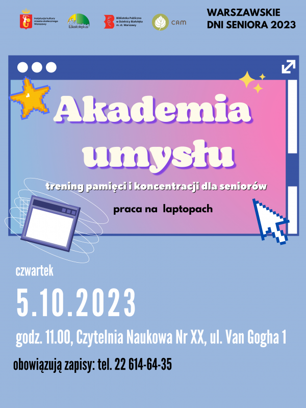Serdecznie zapraszamy seniorki i seniorów na przyjemne spędzenie czasu z komputerem. 5 października o godzinie 11.00 w Czytelni Naukowej Nr XX spotkamy się, aby ćwiczyć pamięć i koncentrację, a będziemy to robić za pomocą gier edukacyjnych!