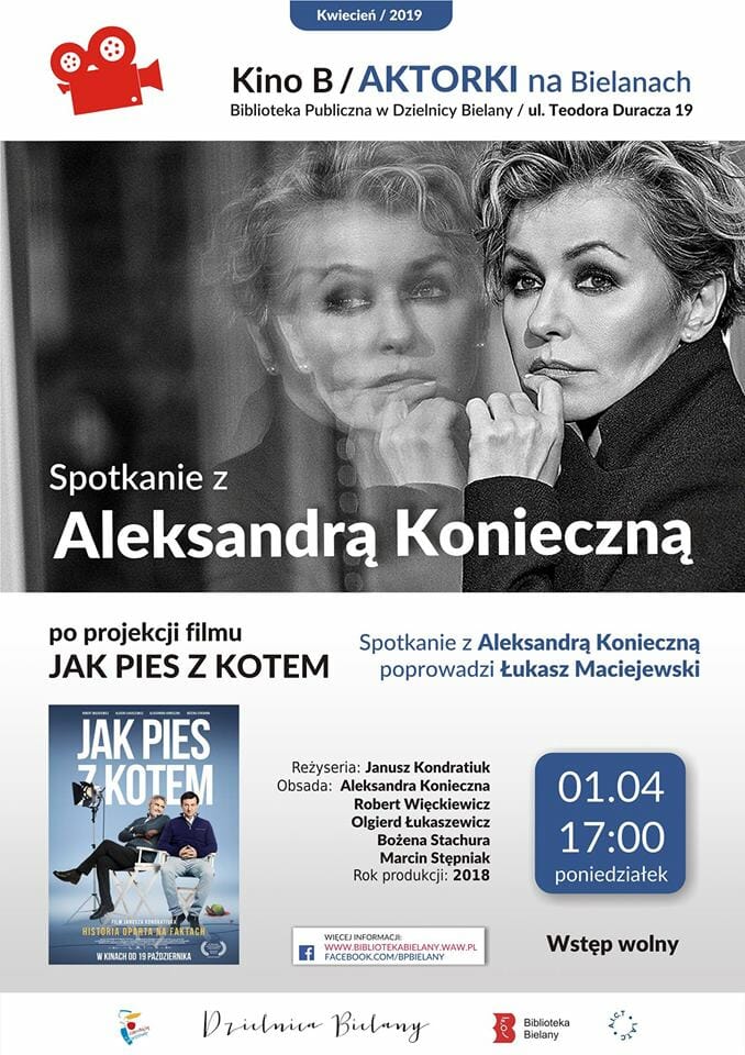 Serdecznie zapraszamy na projekcję filmu „Jak pies z kotem” oraz spotkanie z aktorką Aleksandrą Konieczną w ramach cyklu „Aktorki na Bielanach”.