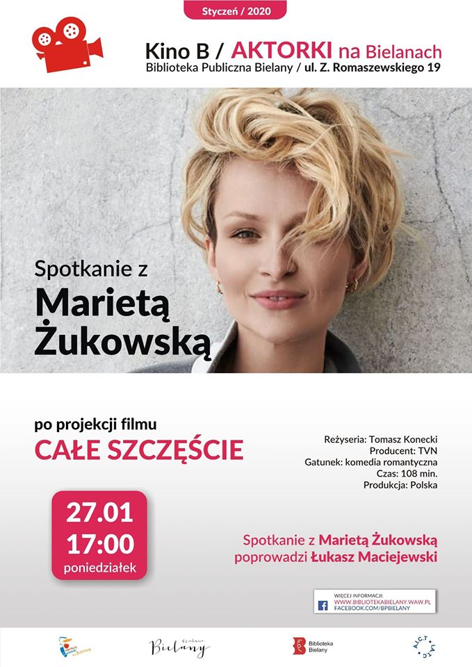 Serdecznie zapraszamy na spotkanie z aktorką Marietą Żukowską w ramach projektu “Aktorki na Bielanach”. Spotkanie poprowadzi Łukasz Maciejewski – krytyk filmowy i teatralny.